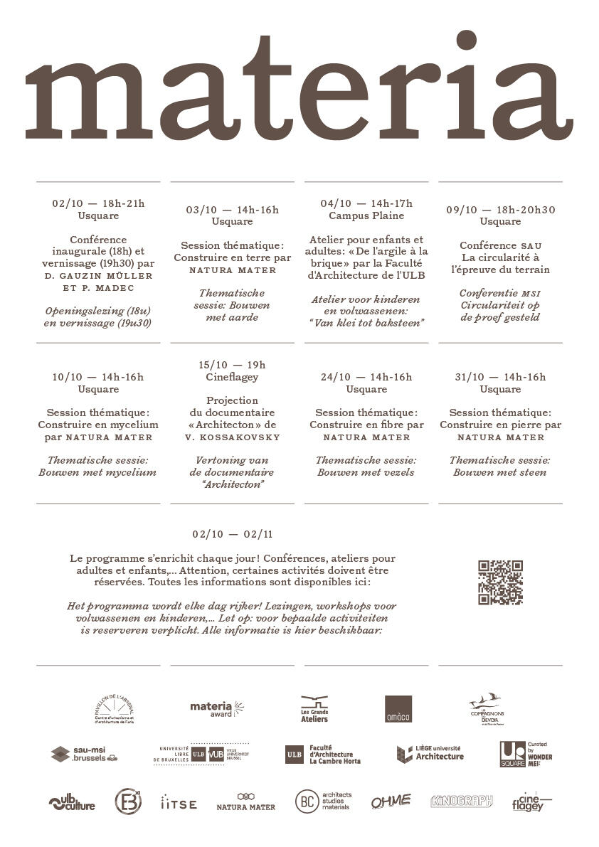 From October 2 to November 2, 2025, Brussels will host the MATERIA exhibition, co-produced by the Pavillon de l’Arsenal, Les Grands Ateliers, amàco, and Les Compagnons du Devoir, and organized by the SAU at the Usquare site.