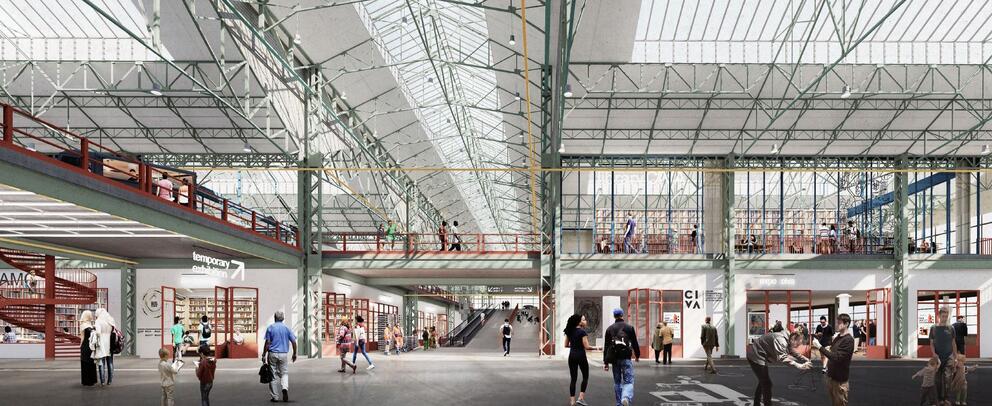 The winning team has conceived the cultural hub as a ‘welcoming, lively and dynamic place of exchange, a place that invites all Brussels residents to feel at home there’. The project stood out also through its collaborative approach: the architects engaged in wide-ranging concertation with the sociocultural scene, whether locally (among others, JES, Maison des cultures et de la cohésion sociale, several Brussels artists) or internationally (Tate Modern, Deutsches Architekturmuseum). The project also includes an extension of the Kaaitheater and a functional connection with neighbouring institutions.