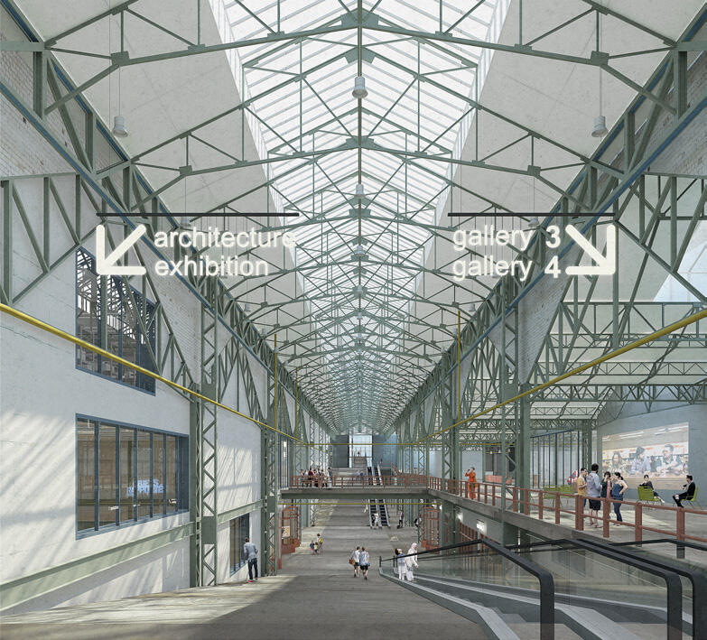Inside, a transverse ‘street’ will cross the site measuring 35,000 m2, giving access to three large ‘boxes in the box’, which will be inserted in the former workshops and will accommodate the Museum of Modern and Contemporary Art, the CIVA Foundation and a 400-seat auditorium. This solution will enable the team of international architects to control the climatic conditions of the different spaces, but it also reflects the team’s desire to breathe life into all of the building’s façades. The museum will benefit from exhibition spaces spread out over four floors of varying heights, making a range of configurations possible.