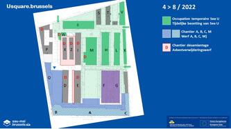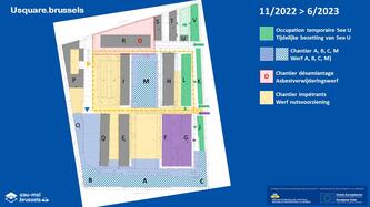 Deze werf betreft de verwijdering van asbest uit alle gebouwen op de site Usquare.brussels. De fasering van deze werf is zo georganiseerd dat de hinder voor tijdelijke projecten tijdens See U zo veel mogelijk wordt beperkt, in het bijzonder tijdens het zomerseizoen 2022.